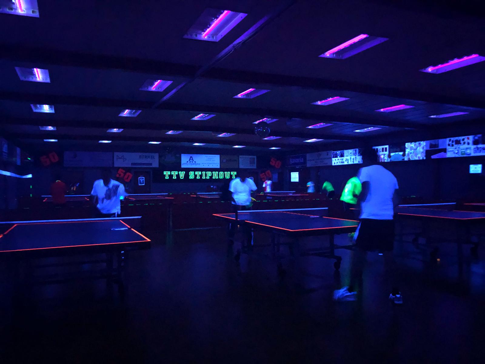 De zaal was helemaal omgetoverd voor het blacklighttoernooi. Tijdens het inspelen kwamen verschillende deelnemers erachter dat je toch niet zoveel ziet. Nadat het toernooi was geopend begonnen de eerste dubbelpartijen, dit samen met je introducee of een gekozen partner. Na enkele ronden dubbelen werd er overgestapt op het enkelen. Zo werd het dubbelen steeds met het enkelen afgewisseld.