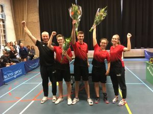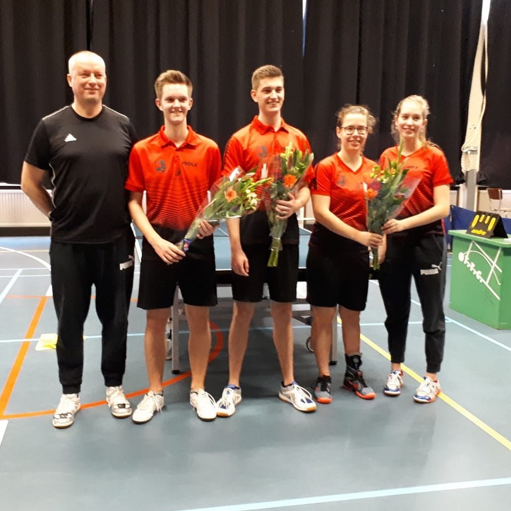 Het team promoveert daarmee naar de 1 e klasse, de hoogste klasse in de Tafeltennis Liga