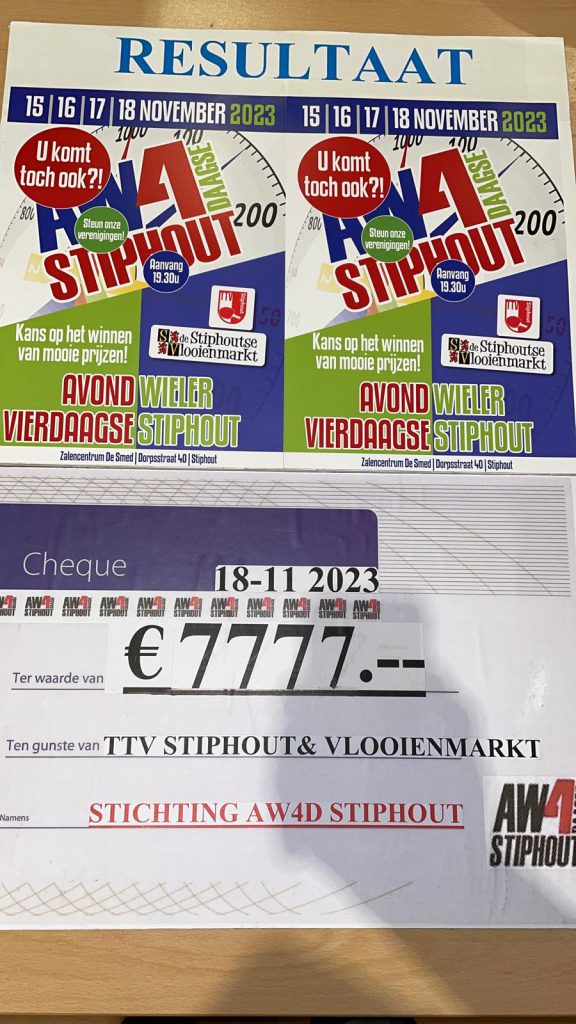bedrag van € 7.777 met dit evenement verdiend! Dit wordt verdeeld als 50-50 onder TTV Stiphout en