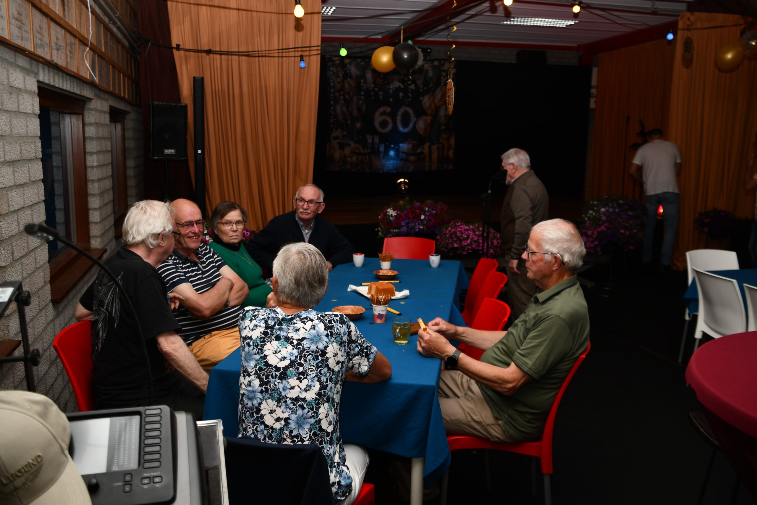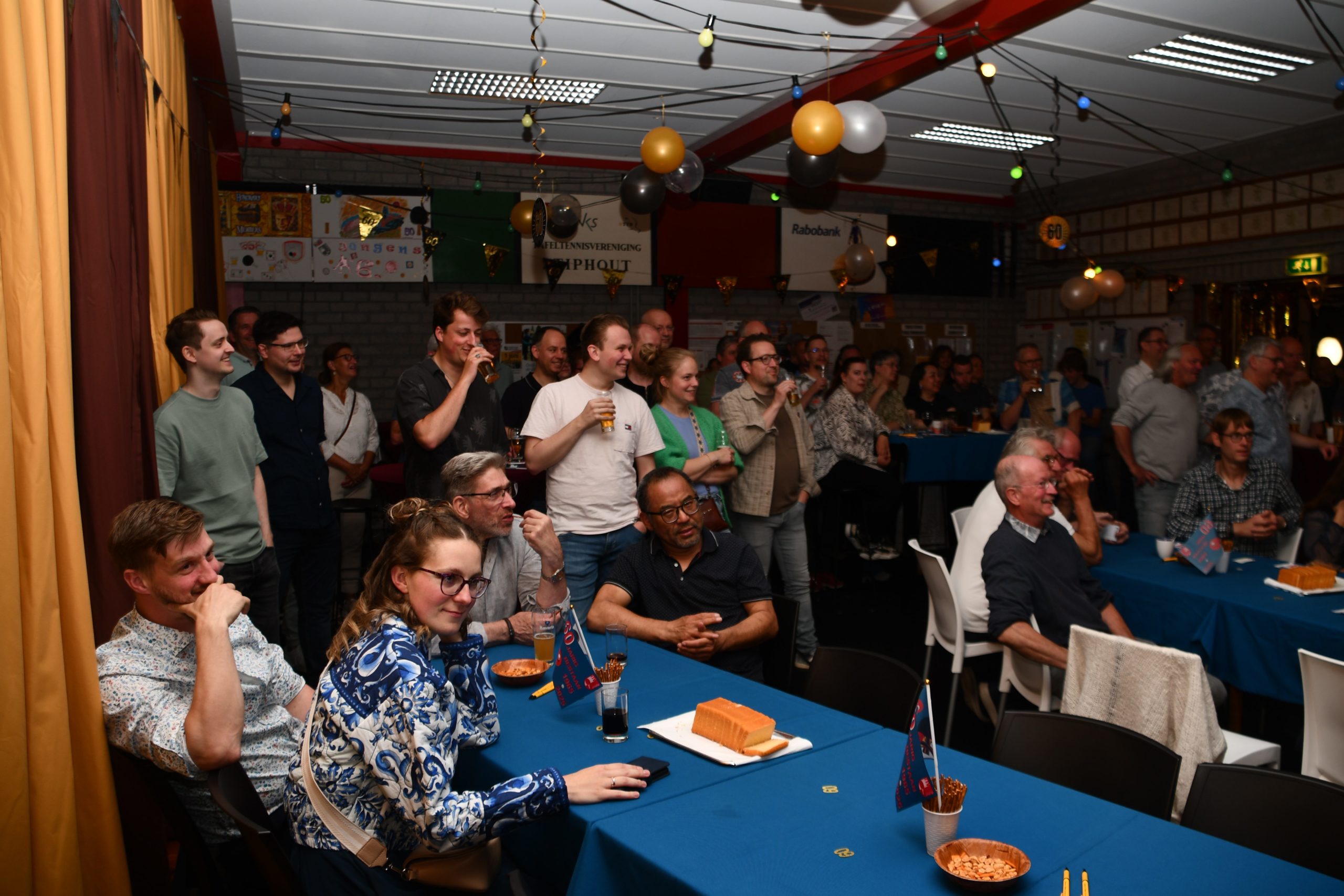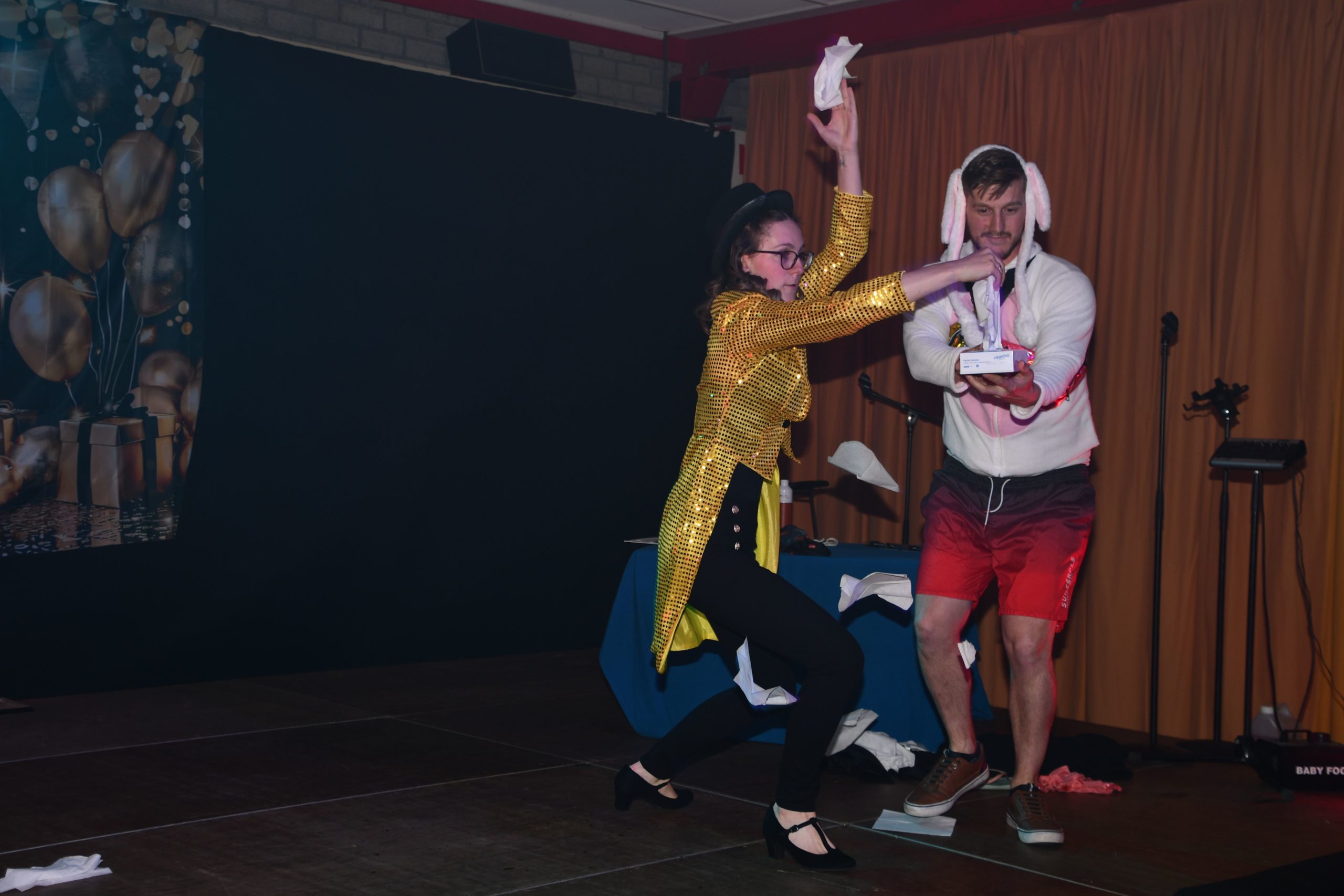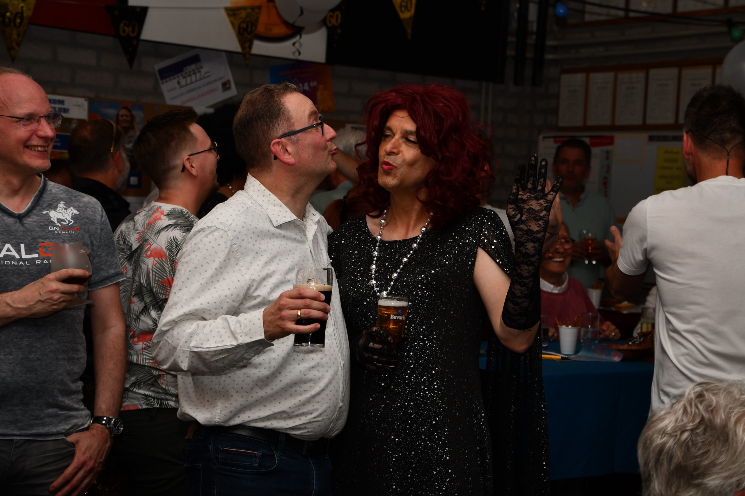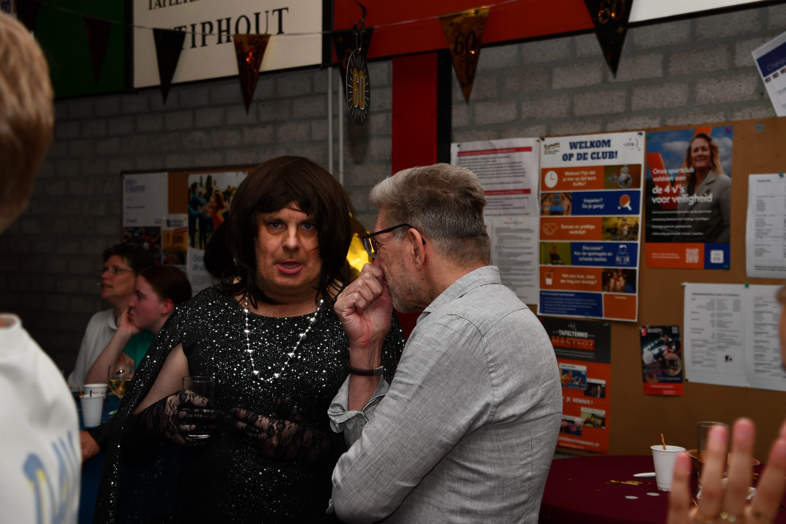 Dan is het tijd voor de hoofdact van de avond. Maurice Schalks maakt er een feestje van. Hij krijgt de zaal goed aan het dansen en mengt zich in het publiek. Zo ontstaat er al bij het eerste nummer een lange polonaise vol hossende en licht bezweette feestvierders. Ook hij moet even op adem komen en in de tussentijd kunnen we het enige kampioensteam van dit seizoen het podium op roepen: Stiphout 3! Ze hebben een topprestatie geleverd en ze gaan met een grote glimlach en een bierpakket onder de arm het podium weer af. Daarna is het de beurt aan Renée die al 40 jaar lid is van onze club. William haalt de oude herinneringen op met de zaal en ze krijgt dan ook een luid applaus en een bloemetje.