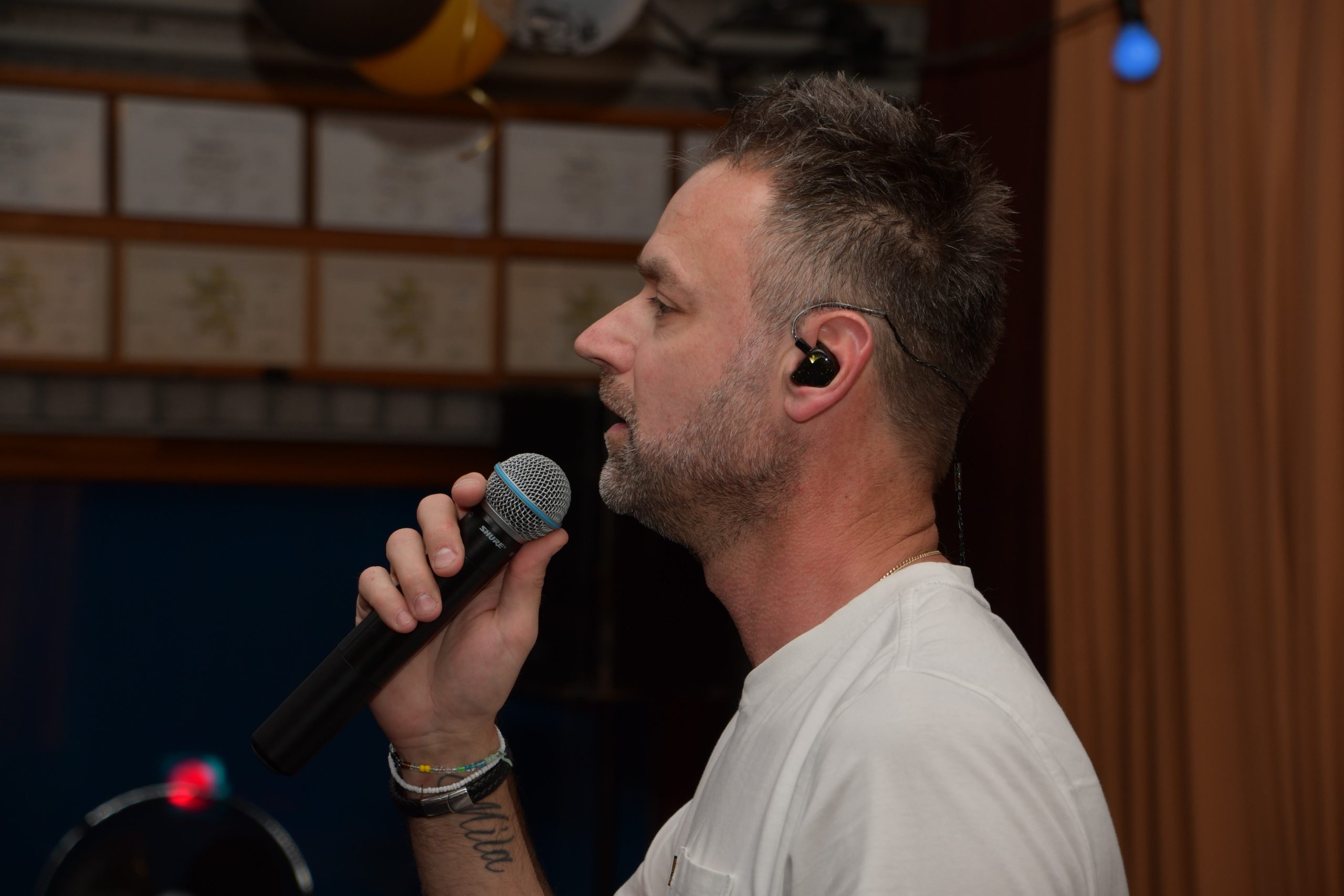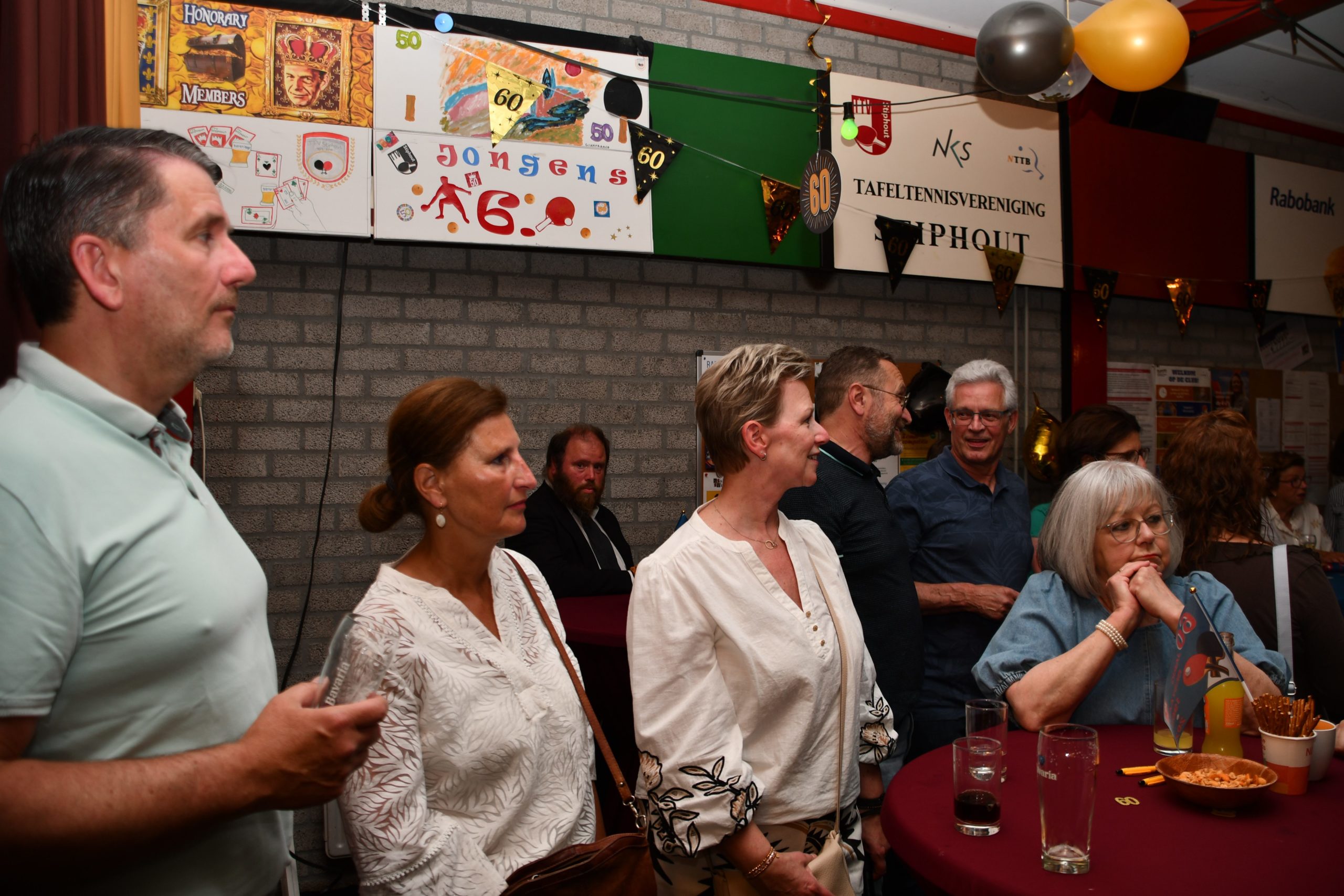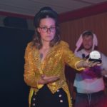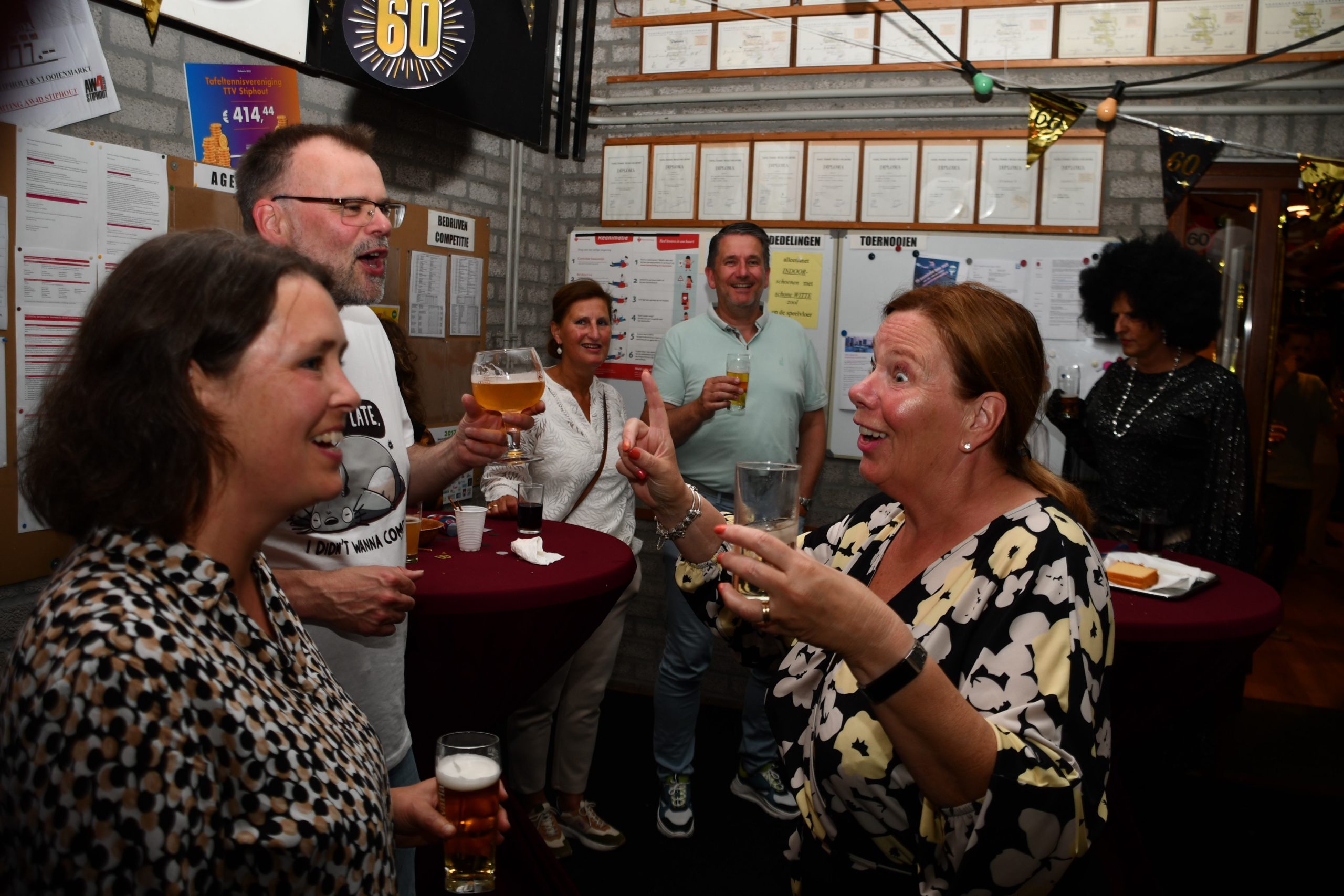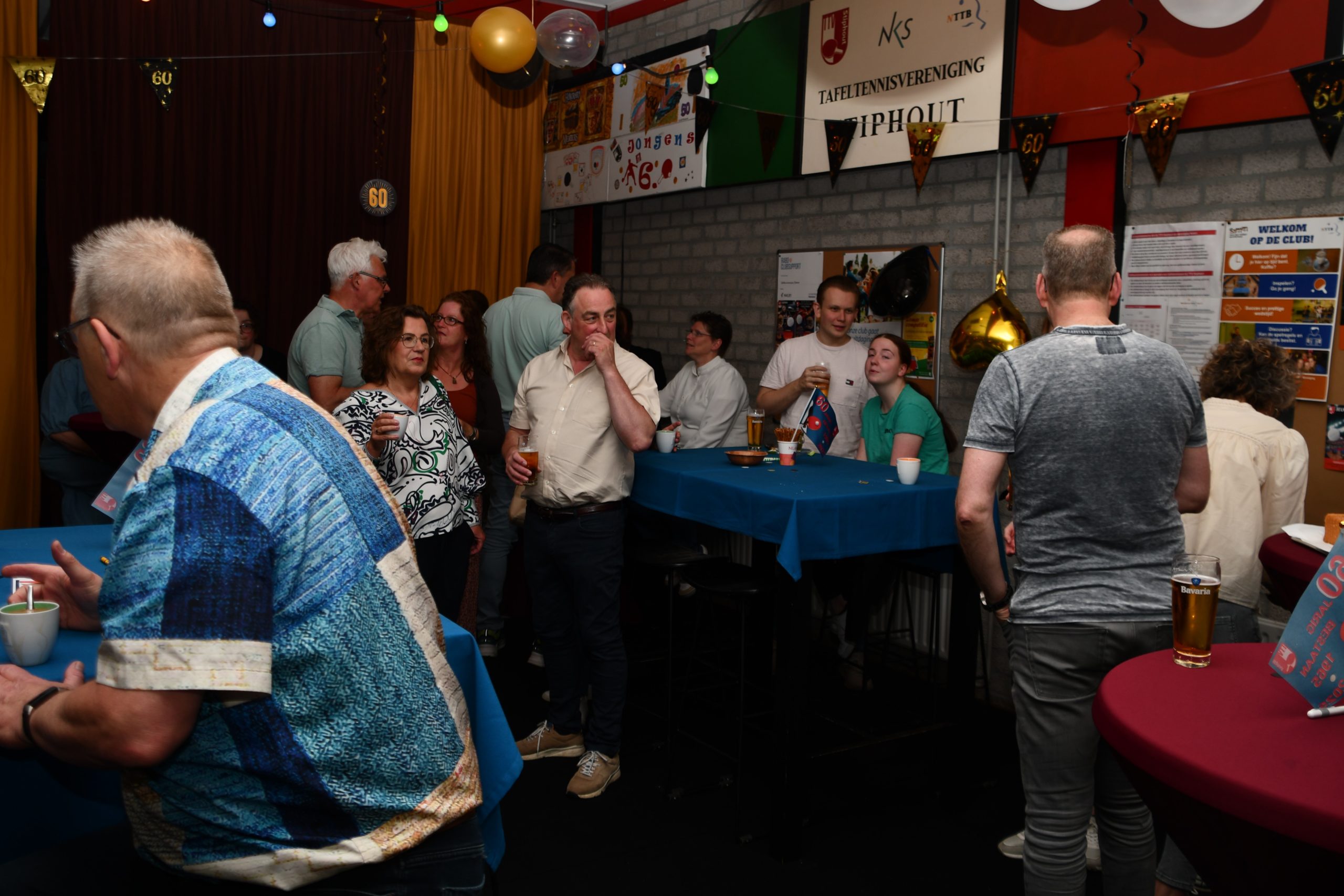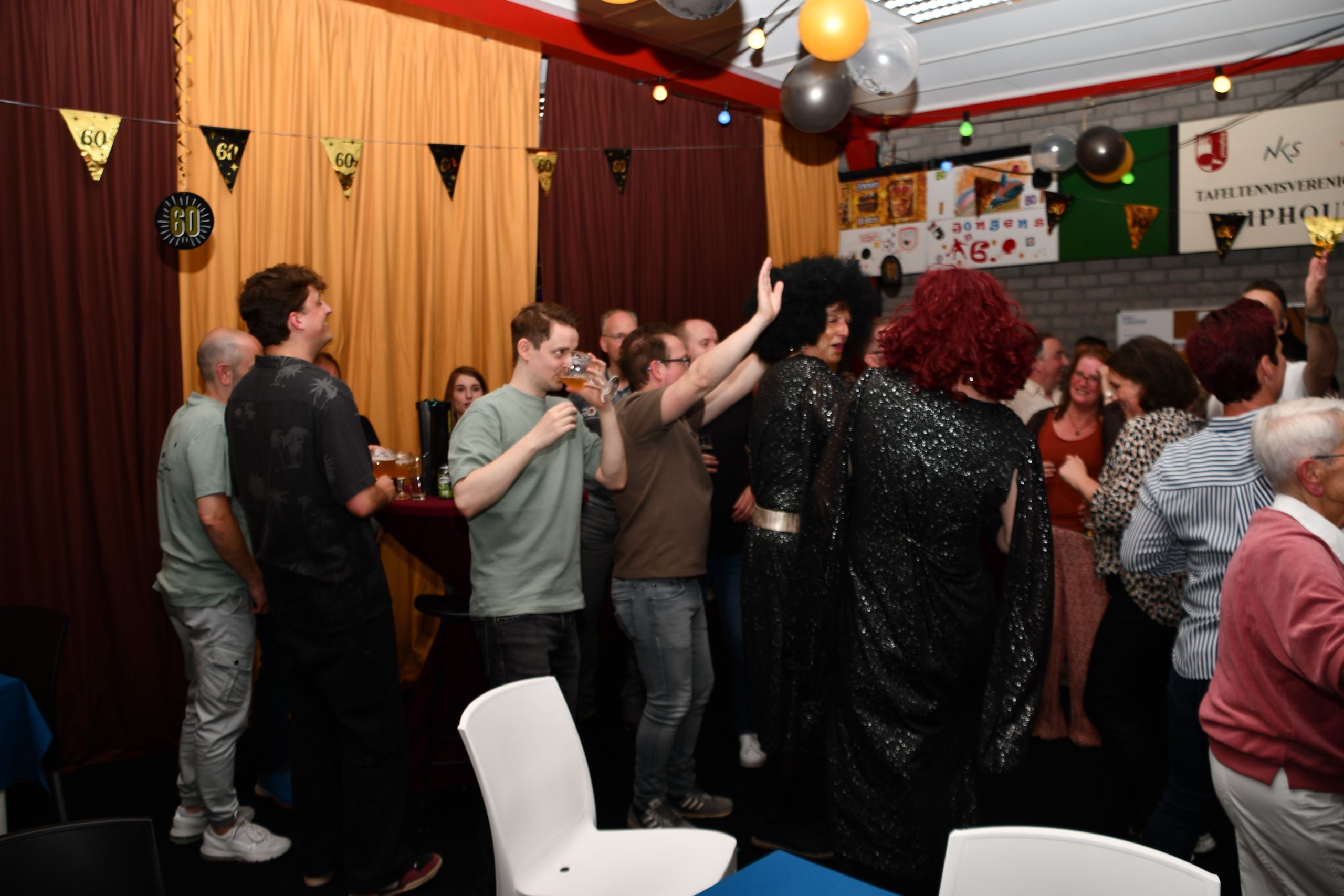 Dan is het tijd voor de hoofdact van de avond. Maurice Schalks maakt er een feestje van. Hij krijgt de zaal goed aan het dansen en mengt zich in het publiek. Zo ontstaat er al bij het eerste nummer een lange polonaise vol hossende en licht bezweette feestvierders. Ook hij moet even op adem komen en in de tussentijd kunnen we het enige kampioensteam van dit seizoen het podium op roepen: Stiphout 3! Ze hebben een topprestatie geleverd en ze gaan met een grote glimlach en een bierpakket onder de arm het podium weer af. Daarna is het de beurt aan Renée die al 40 jaar lid is van onze club. William haalt de oude herinneringen op met de zaal en ze krijgt dan ook een luid applaus en een bloemetje.