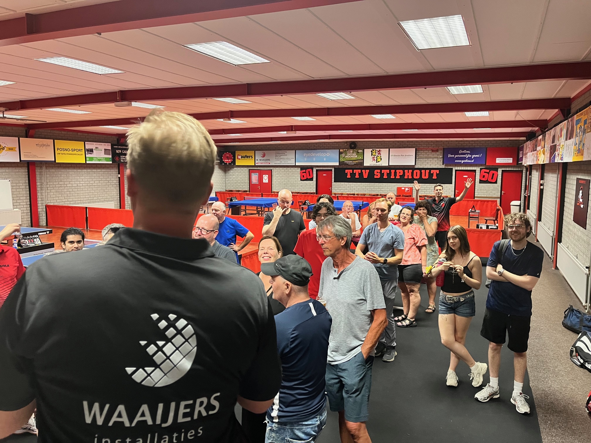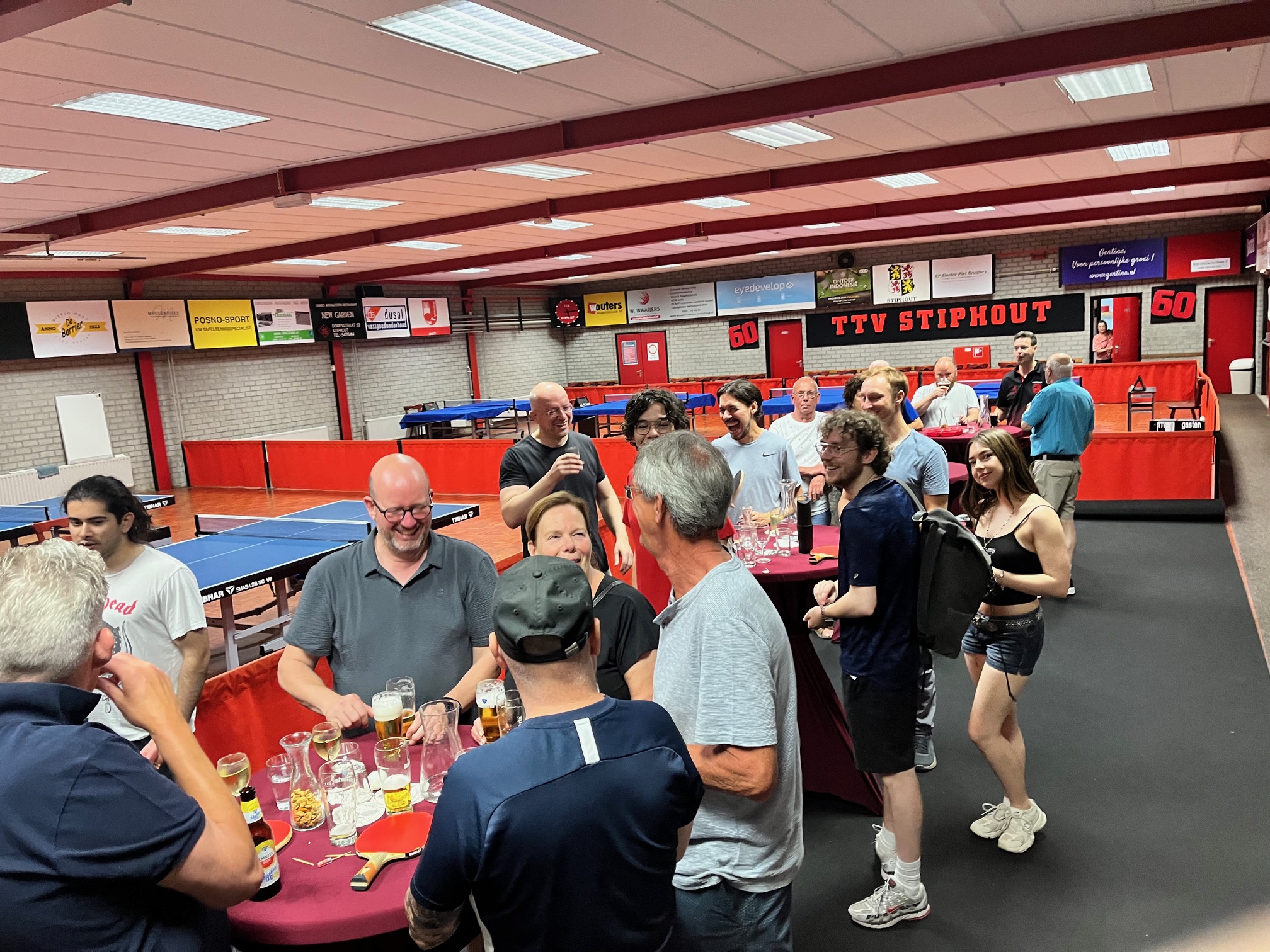 Op zondag 22 juni vond de reünie plaats ter gelegenheid van het 60-jarig jubileum van TTV Stiphout. Liefst 90 mensen, bestaande uit veel leden en vooral ook oud-leden bezochten op deze warme dag tafeltenniscentrum Stiphouse. Veel oude bekenden herkenden elkaar weer en hebben mooie verhalen uitgewisseld. Zo lagen er ook veel fotoalbums die mooie herinneringen terugbrachten. Maar vooral ook de leuke herinneringen aan een ver of iets minder ver verleden zorgden voor een fijne sfeer. Twee van de oprichters van onze vereniging waren ook van de partij, Hein en Henk!