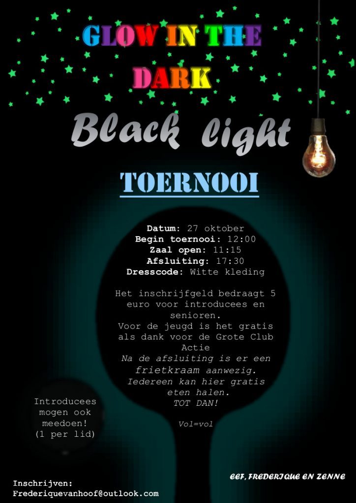 Blacklight toernooi 27 oktober a.s